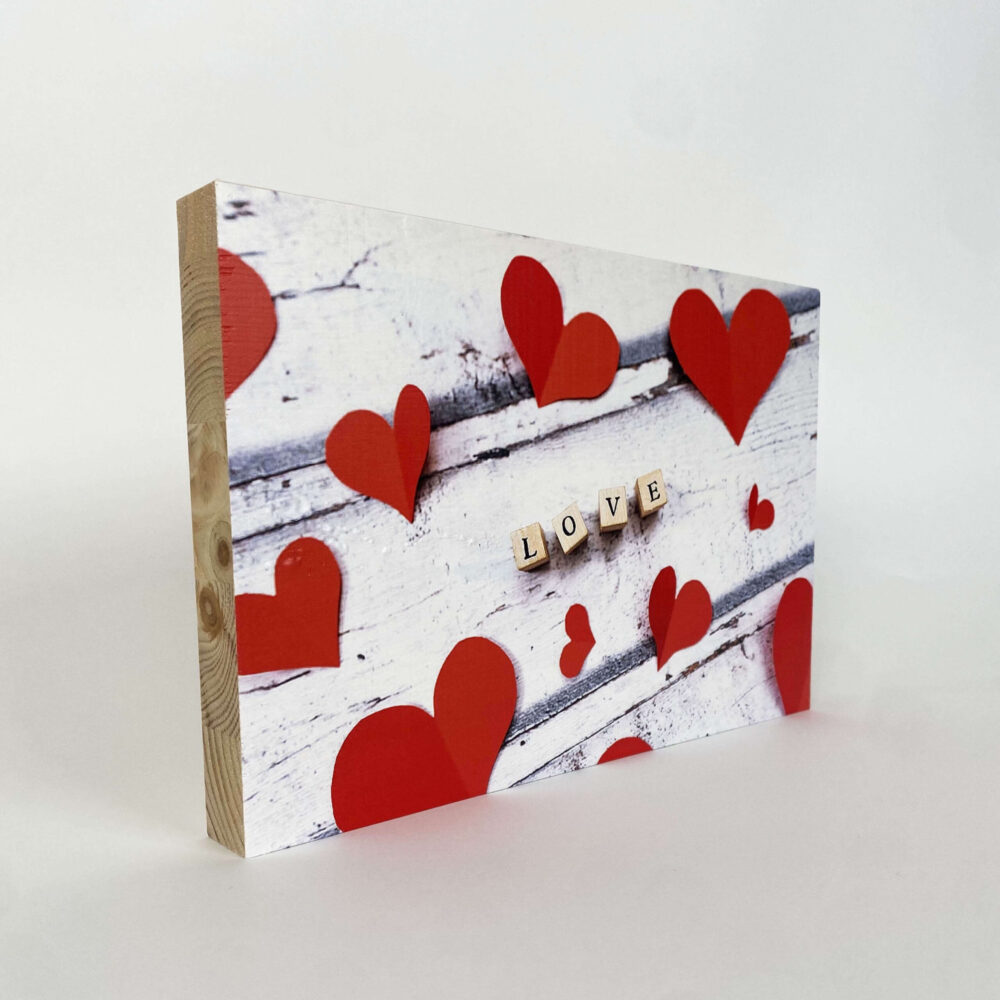 קוביית עץ עם תמונות בהדפסה איכותית בגודל 10X10X10 ס״מ כאשר כל תמונה בגודל 10X10 ס"מ-